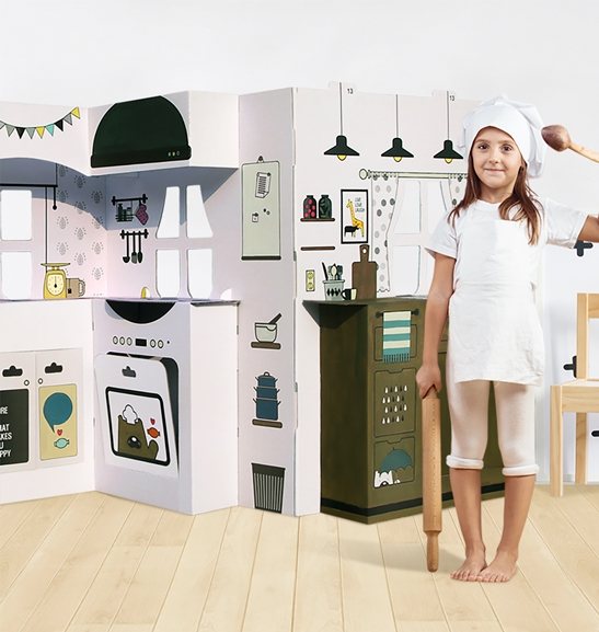 推薦2:韓國ANBOX趣玩紙屋/廚房我做煮。用簡單易懂的摺疊方式變成紙屋,搭配著色工具創造出小孩的秘密空間,玩起創意辦家家酒。