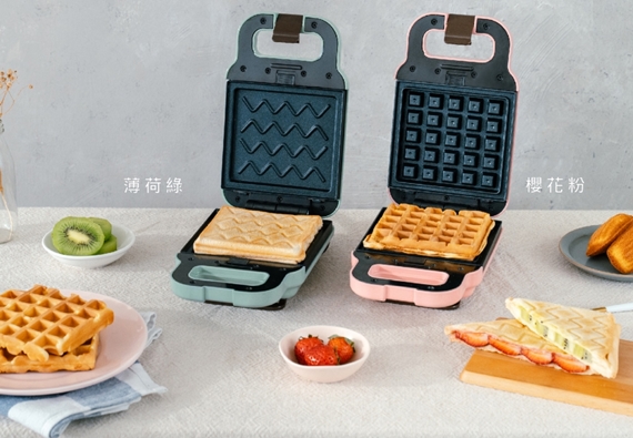 想要做出美味的早餐,就派出這款超人氣三明治點心機,內附二種烤盤,輕鬆做出熱壓土司及格子鬆餅。