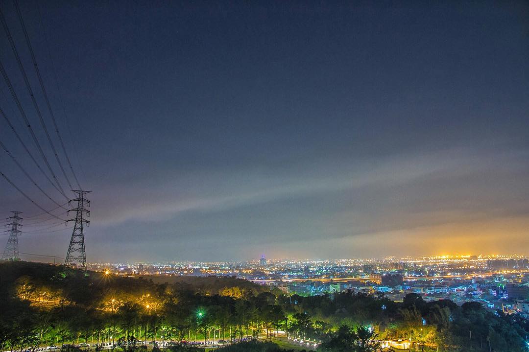 位在台中大雅月老廟附近的夜景,視野遼闊,可以將台中港碼頭、高美濕地、國道三號川流不息的金黃色車流都盡收眼底,從白天到夜晚都能飽覽不同的大地景致