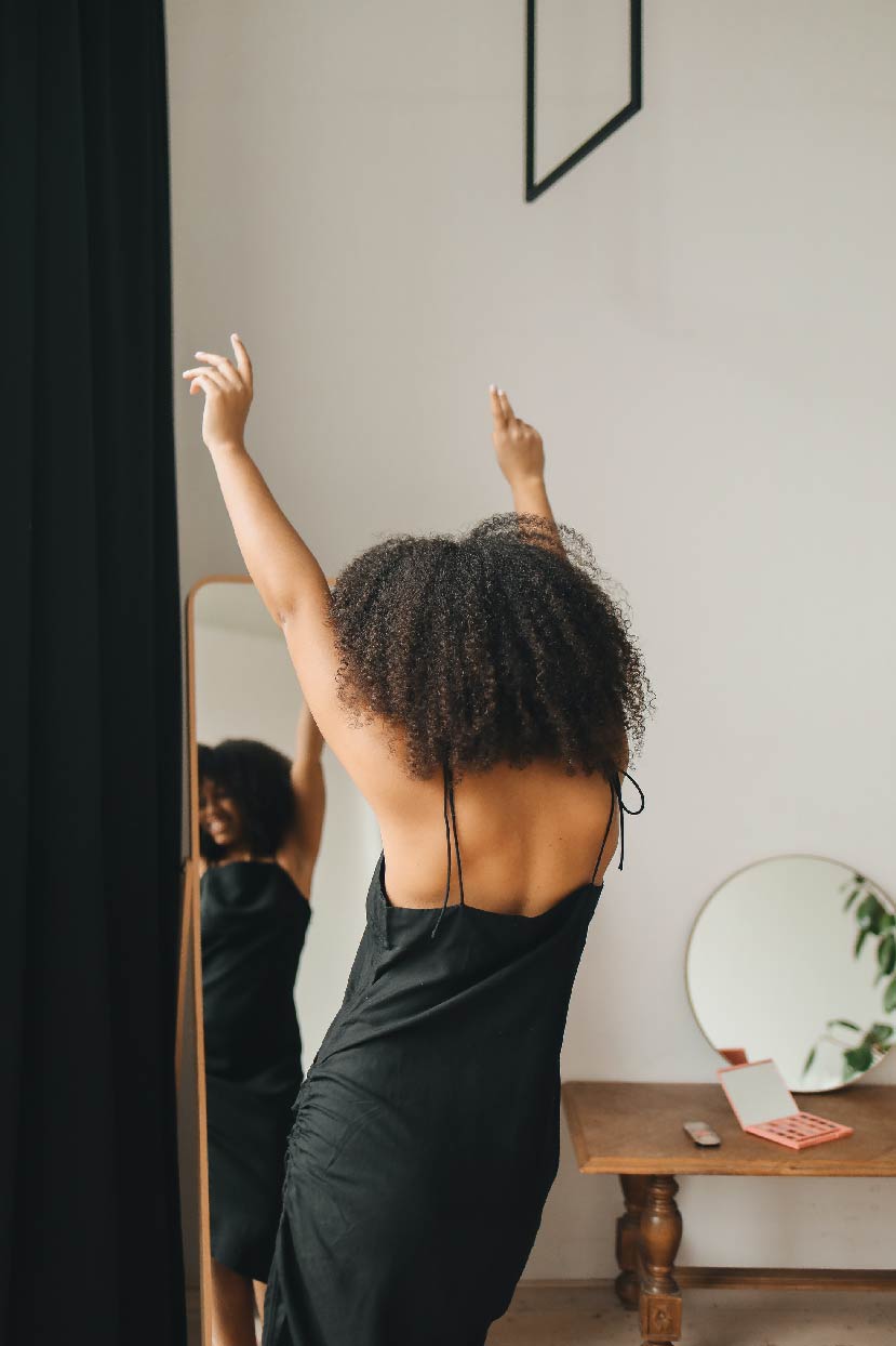 試著在照鏡時稱讚自己,而且每天稱讚的部位都要不一樣,小至毛細孔、大至腰身,只要眼睛看得到的通通給我稱讚一遍!只要你相信它是好的,它們就會慢慢變好,好到妳不愛上自己都不行~