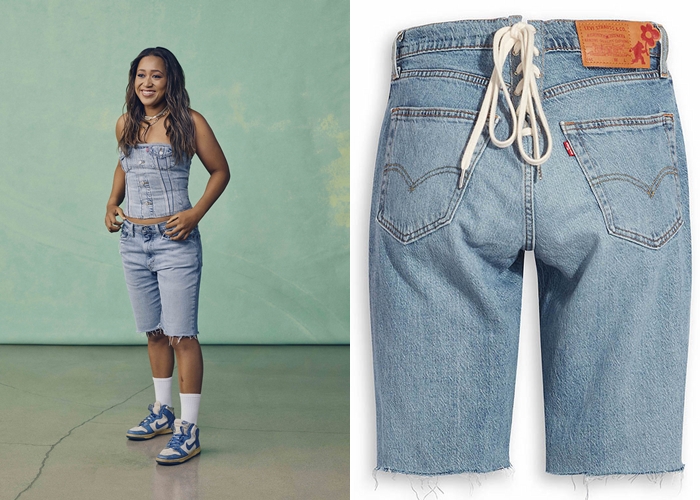 第1款:綁帶式及膝丹寧短褲。重新詮釋LEVI’S®經典丹寧短褲,以二手男裝丹寧褲製作,採用褲管不收邊及後腰綁帶的設計,及膝款是現在潮流元素之一,再加上綁帶更有活力感。NT.4390元。