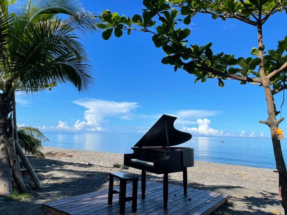 (阿茲有話說:除了海景很海拍外,魔幻咖啡店裡店外還有鋼琴、飛機、任意門等多樣拍照景點,非常好拍)墾丁海景咖啡廳2:Under Star Lab草地餐桌實驗室