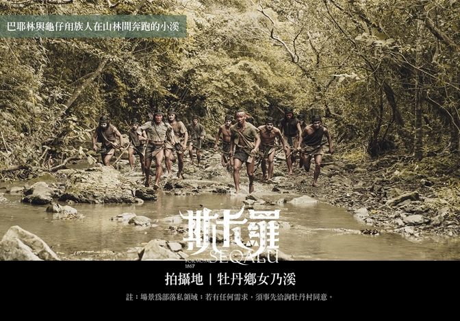 巴耶林與龜仔甪族人在山林間奔跑,穿越小溪、山林,整個運鏡看起來超寫實、生動。這個地方為部落場私領域,如果有任何需求,都要事先洽詢牡丹村的同意,這也是尊重部落的方式。屏東牡丹鄉女乃溪:屏東縣牡丹鄉牡丹村
