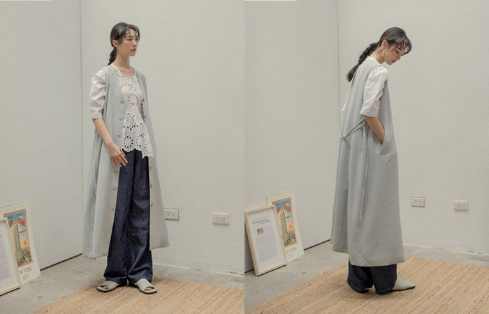 長版背心外套可以選擇收腰綁帶的款式,襯托腰線或者直接打開、不扣鈕扣。整體穿搭加上一層背心,不同於夏季穿搭的單薄,秋風吹來也不用怕著涼!(圖:a FAD)