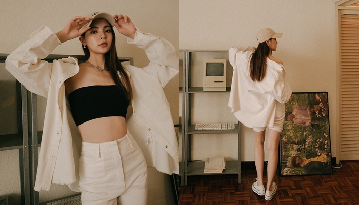領口加入抽鬚造型,增添設計感,捲起袖口也能當作另一種穿搭樣式,擺脫穿長袖的死板。搭配裙子或是褲裝能營造出上身的俐落大方。(圖:Miyukiselect)