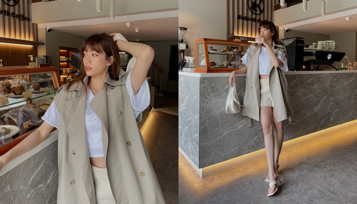 對於穿了外套怕熱的女孩,很推薦背心外套這種初秋單品,保留原本的上衣,但能外搭一件薄款背心,讓秋天穿搭更有層次。