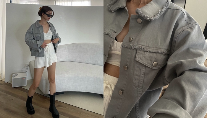 材質上具有彈性,屬於貼合型的單品,由勾針製成的小小縫隙,通風也不怕太熱,整體搭配短版排扣,也能襯托修長的下身。(圖:Mercci22)抽鬚牛仔外套