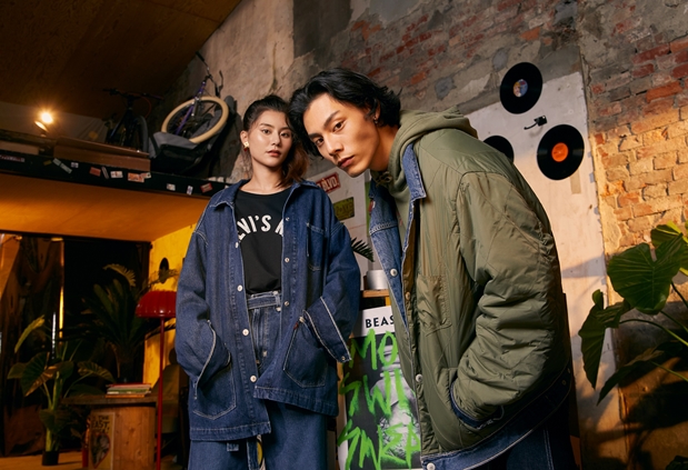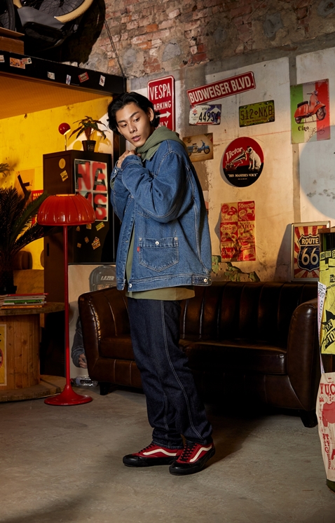 寬鬆的著衣襯托大男孩個性風,重點元素包含及經典的LEVI’S Logo Tee、百搭潮流丹寧褲及軍裝風丹寧夾克等等,完全零失誤的搭配。