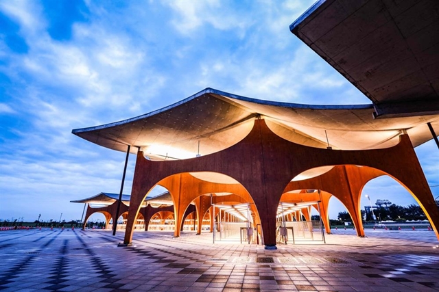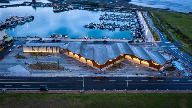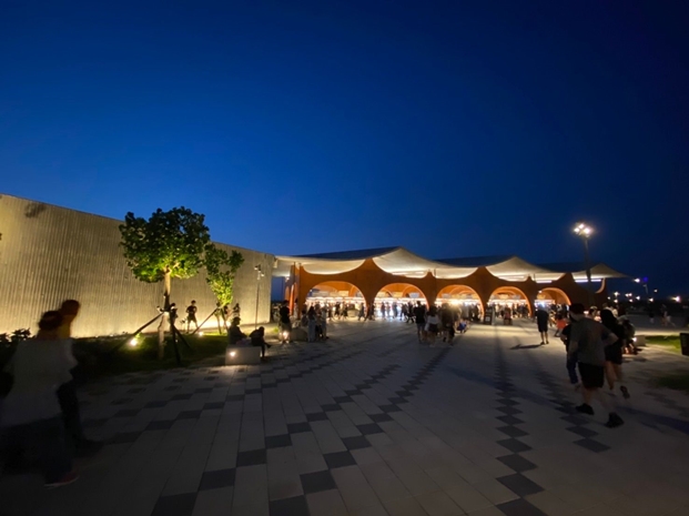 「波光市集」可以容納74席攤商,販售各式飲品、炸物、燒烤等等小吃,讓南寮漁港更加熱鬧,整體市集的營造非常有質感,從浪屋頂構成的「黃金沙灘色系」的建築,給人一種充滿藝文風的體驗。