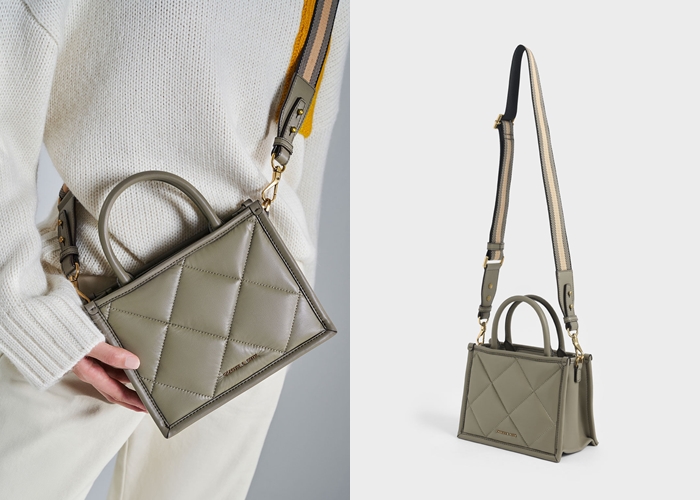 帶點焙茶拿鐵的溫潤色調,加上菱格設計,讓包款有種蓬鬆的觸感,而且完全不會呆板,使用拉鍊收納設計讓物件拿取更順手。還有附上拆卸式背帶,變成手提也很好看!NT.2390元。
