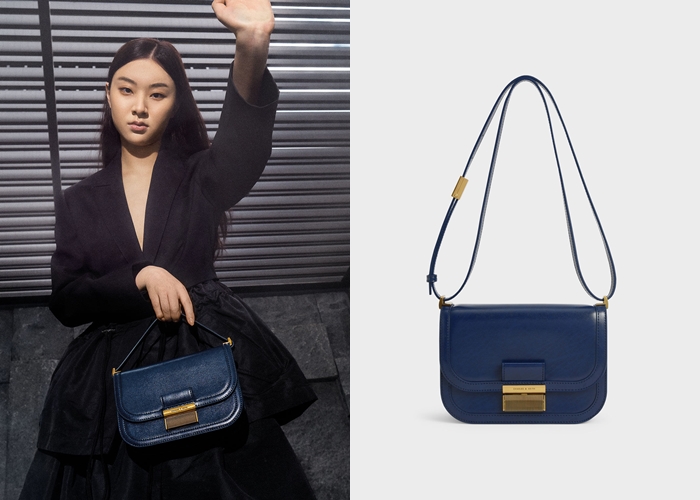 以海軍藍呈現高貴的氣息,整體包款的剪裁輪廓明顯,並搭配銅金色壓紋釦,讓你的品味更出色。秋冬天配上俐落的套裝、裙裝,營造出女性職場穿搭的都會風格。NT.1990元。