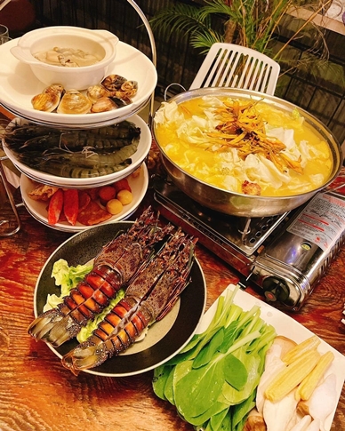 鍋物餐點最推薦黃金海陸鴨肉鍋,湯頭鮮甜,鴨肉又軟嫩入味,再搭配海鮮食材龍蝦等,讓整桌人吃的超滿足!