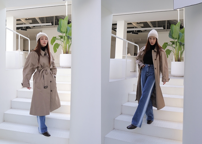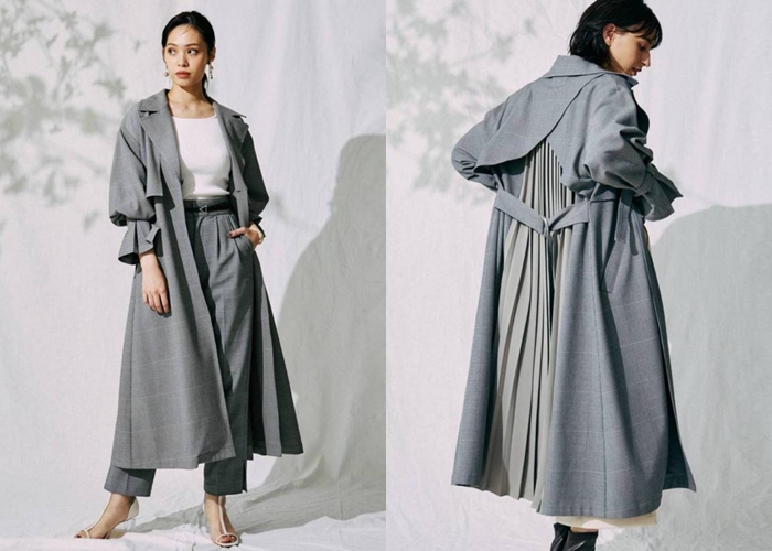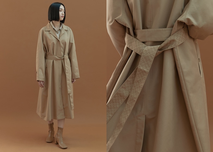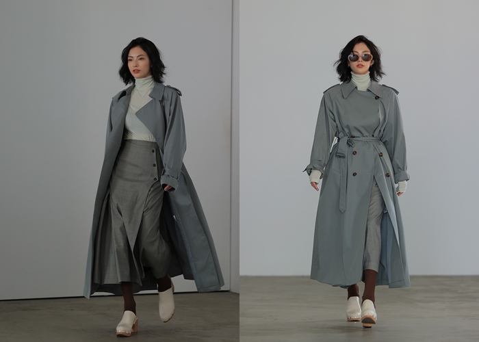 「Nanda Made」,推出這款藍灰色系的簡練風衣,剪裁大方又不失經典元素,包含肩袖、雙排釦及腰帶設計,不扣鈕扣的穿搭顯俐落、包緊緊收腰效果也很好!