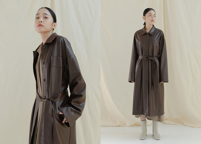 全件以深紅棕色不落於俗套,透過光霧的視覺效果提升質感,增加胸前一貼式口袋及兩側口袋設計,更為實用。搭配一雙麂皮裸靴或皮靴更有一體性。【喜歡嗎?這邊還有】