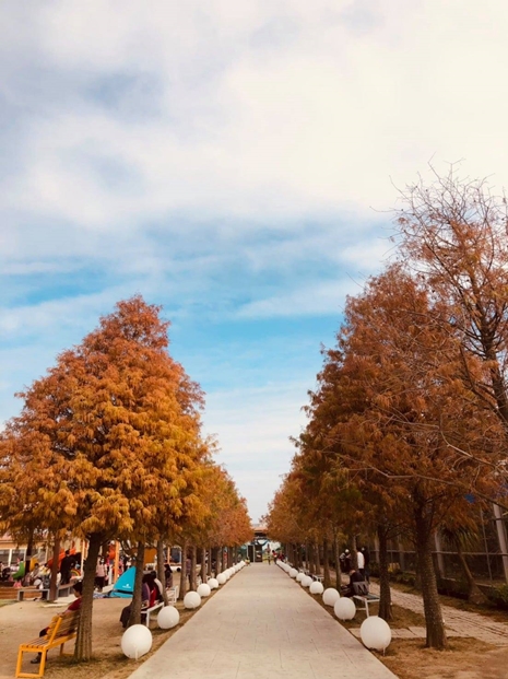 超浪漫的落羽松林大道,隨著季節由綠轉黃、黃轉紅,現在正值賞楓最剛好的季節。