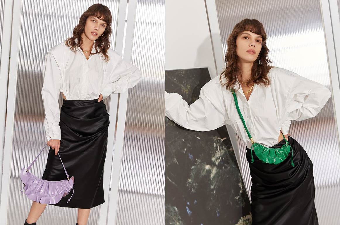▲ JÚNEE家的包款G編最推這款外型神似水餃的GYOZA包,皺褶處超美、有荷葉領的感覺,甜美、前衛兼具,而且弧形的設計其實很能裝~