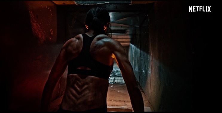 最讓粉絲印象深刻就是穿著運動內衣,秀出超結實的蝴蝶背肌,擅長格鬥、使用槍械的動作戲,絕對是韓國女力代表!