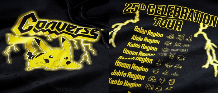Converse攜手歡慶25周年的寶可夢,推出全系列聯名款,從鞋款、服裝到配飾,將高人氣的寶可夢角色賦予時尚品味,設計概念也以故事的主軸出發,在經典Chuck Taylor All Star鞋款上大膽創作,凸顯寶可夢前衛又可愛的雙重風格,讓親子穿搭更實用!