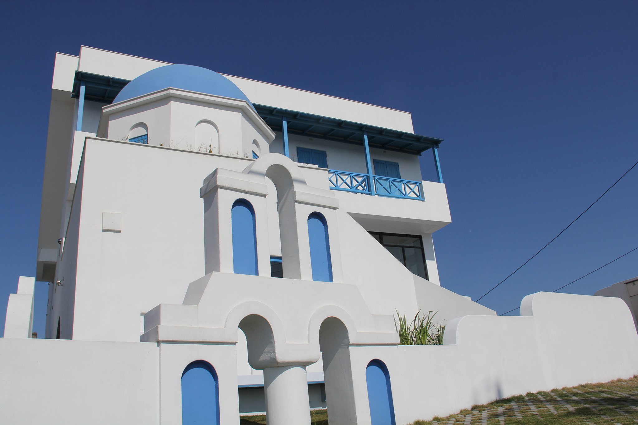 布魯懷特的老闆因曾去希臘旅遊而為此著迷,希望能把這份感動分享給在台灣的大家。民宿外觀有大量的經典希臘式藍白色和拱形~而民宿位在的地理位置,能遠眺龜山島、被海風輕撫。