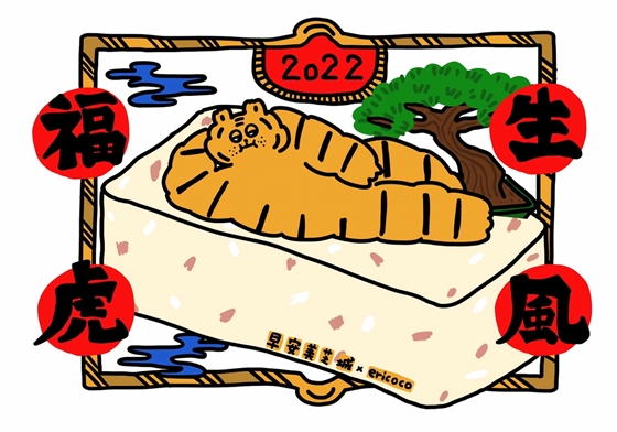 新生代人氣插畫家Ericoco,為經典台菜設計包裝。以窗花元素為主,將五零、六零年代最常見的山形、櫻花、幾何花窗圖形放進包裝上,更搭配Ericoco招牌「小虎」意象,年節期間看了就是討喜又應景!