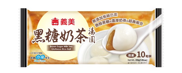 黑糖奶茶湯圓選用上好糯米精製而成,同樣不添加防腐劑、無添加焦糖色素,