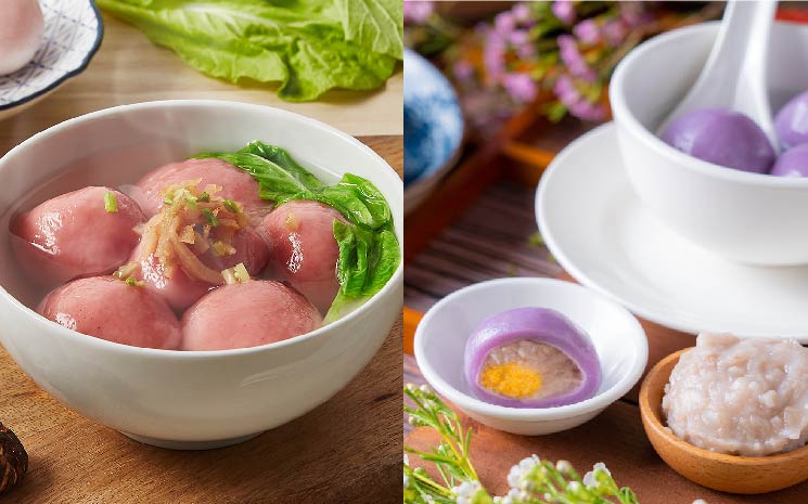 五色口味分別為原味、紅麴、薑黃、桑葚葉、蝶豆花,無論搭配甜湯或是鹹湯都超OK。-