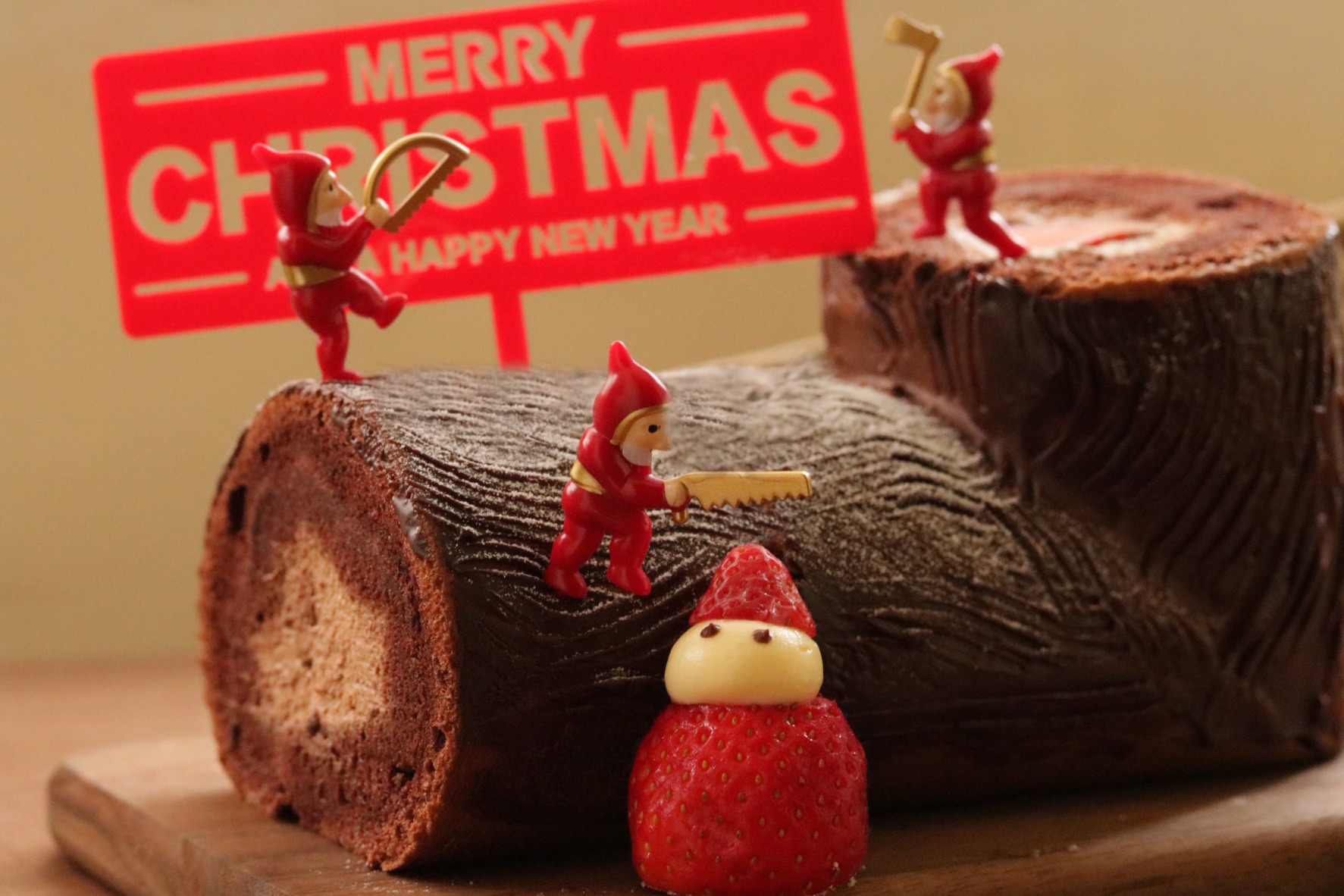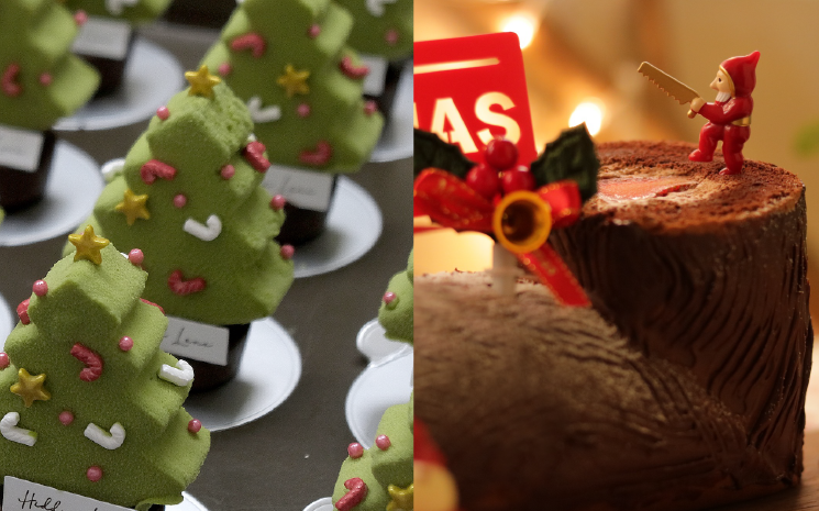 法文為「Bûche de Noël」的樹幹蛋糕以聖誕樹為發想,是法國當地常見的聖誕甜點,並以蛋糕捲的形式包覆著濃濃的巧克力餡料。