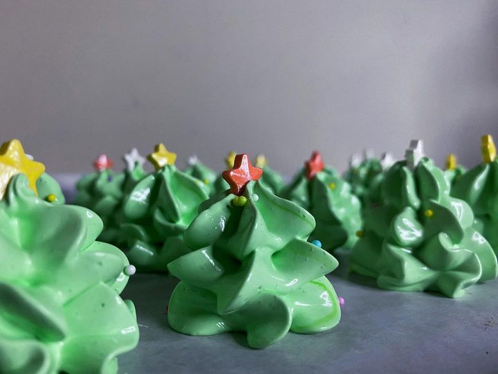 「路口。甜點」的聖誕樹造型馬林糖超療癒,建議絕對不要有買它當作禮物的念頭,因為買了絕對捨不得送人,實在太萌太Q~不過因為是蛋白霜的緣故甜度較高,建議配茶、無糖茶一起享用喔!-