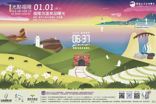 福容飯店福隆店舉辦「擊鼓迎新晨光祈福」,在早上7點擊鼓迎日出,並發放祈福卡,讓旅客寫下新年願望,懸掛在祈願樹上。頭城馥森里山日出約6點37分,園區在6點25分至6點45分擊鼓迎龜山日出,為土地、生態獻上最深的感謝與祝福。亞米好康分享:大東北角觀光圈業者從1月3日至27日推出「新年走春開紅利」優惠專案,包含平日住宿買二送一、景點園區門票優惠等等。新店碧潭:超人氣「角落小夥伴」水上地景