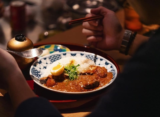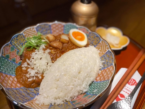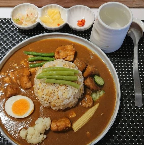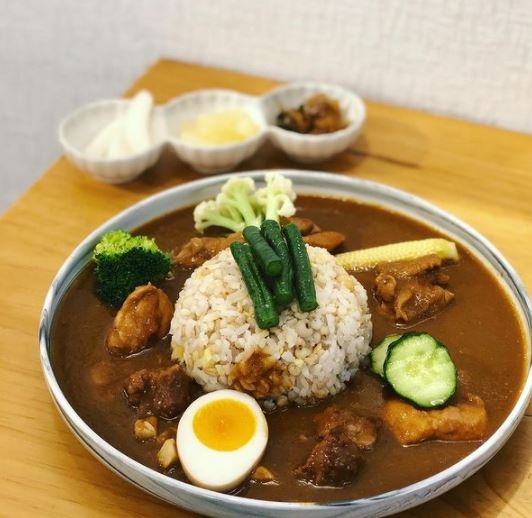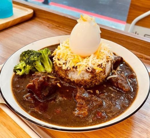 它的咖哩飯造型非常可愛,放上一顆糖心蛋就像鳥窩一樣,讓人拍照拍不停!店內的牛肉咖哩,辛香料味道濃郁,牛肋條也軟嫩,加入油條一口卡滋卡滋真的很爽快!如果熱愛辣油的人,搭配牛肉一起吃超級濃烈款唷~NT.190元。