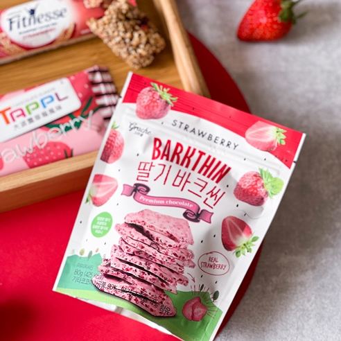 來自韓國零嘴,使用冷凍草莓果乾,融合在板狀巧克力之中,讓你吃到草莓顆粒的酸甜味,NT.99元。