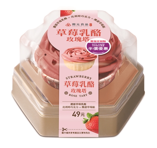 情人節吃浪漫的甜點,玫瑰塔造型配上草莓乳酪,更點綴比利時巧克力及草莓醬,讓你吃的每一口都有層次,真的太想買了!NT.49元。