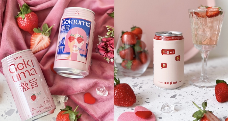 來自日本原料製作GEKIUMA激旨草莓雞尾酒NT.52元。本土品牌臺虎精釀朦朧莓沙瓦NT.59元。
