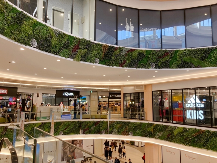 亮點1:紅陶磚古都商場。位於台南高鐵站旁的三井Outlet,外觀以層層交錯的木紋磚步道,呈現紅樹林植物的氣根向上延伸的生生氣象。整座設施就像是台南第二個綠色隧道,又帶出古都的強烈氣息。