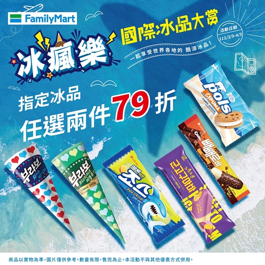 亞米好康分享:全家超商「冰瘋樂」國際冰品大賞到4月5日期間,購買指定進口冰品任選兩件79折優惠,絕對爆吃一波。【喜歡嗎?這邊還有】