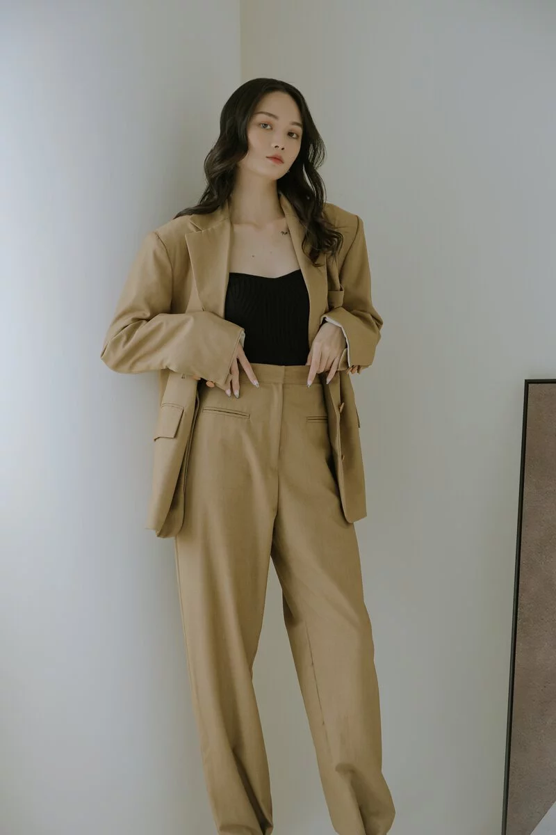 One piece的洋裝可以說是能快速出門的首選單品!這款修身洋裝Aline寬鬆版型適合各式身型。布料觸感類似防潑水布料,透涼親膚,最適合微熱的春天。另外,這款的小心機在於裙片可由前面扣上或拉至後面扣上,兩穿設計感,又是另一件洋裝。(根本買一送一!)2022春季套裝推薦2:HUPO-率性經典寬版西裝外套+長褲套裝