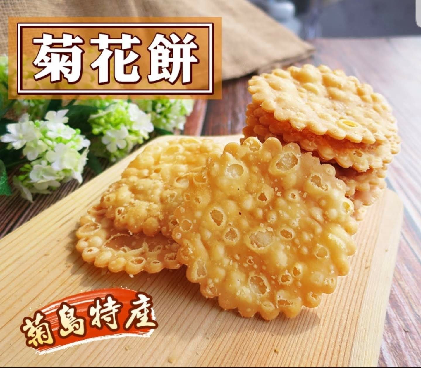 到海島玩當然要帶點海產回去囉!四十年老字號伴手禮店的澎湖伯有提供各式海味零食,如魚皮餅乾、丁香魚花生、蜜汁小卷、魚骨酥及干貝醬等,喜歡鹹鹹海產製品的話,澎湖伯絕對是你的好選擇~澎湖伴手禮推薦5:三凱餅舖-菊花餅