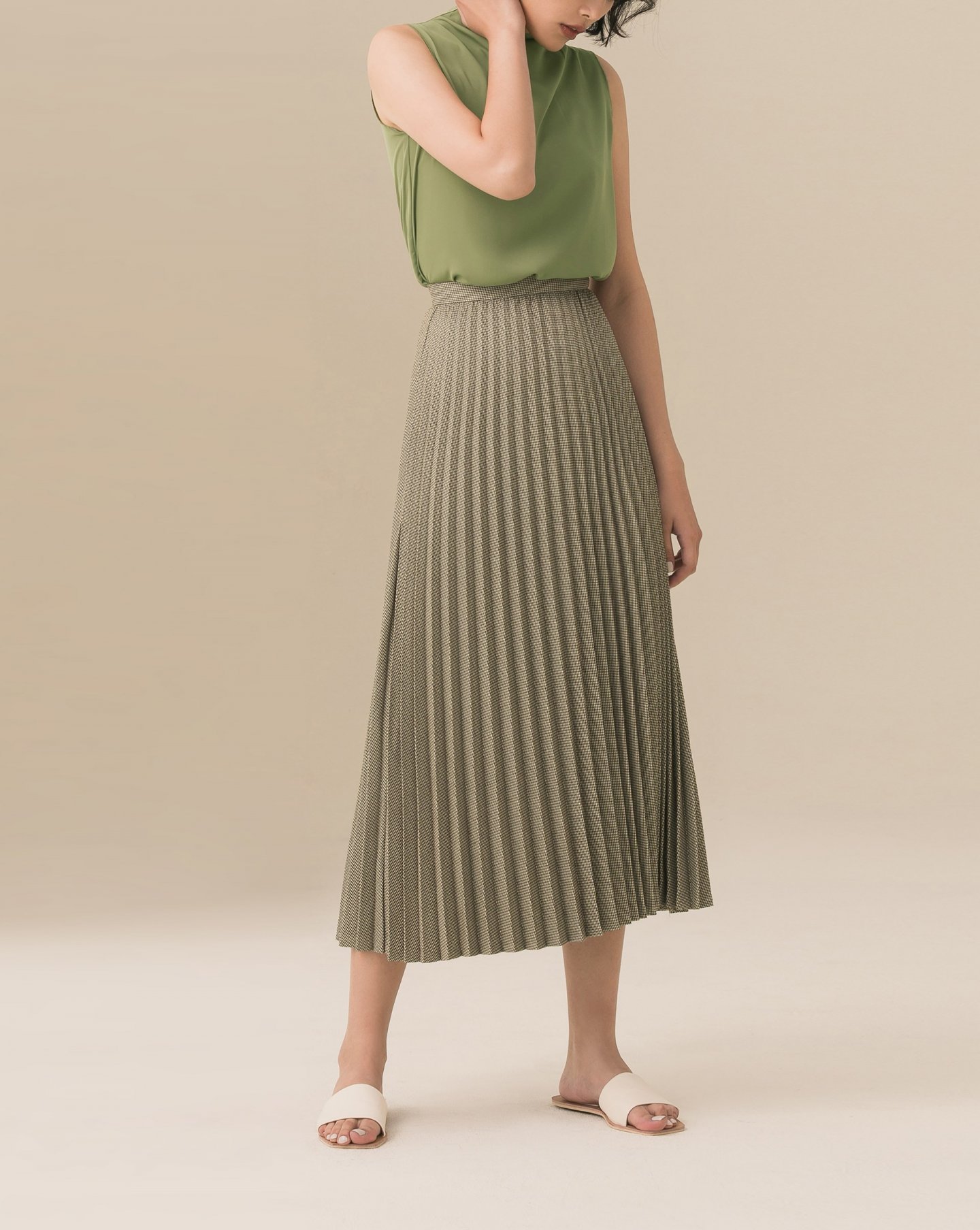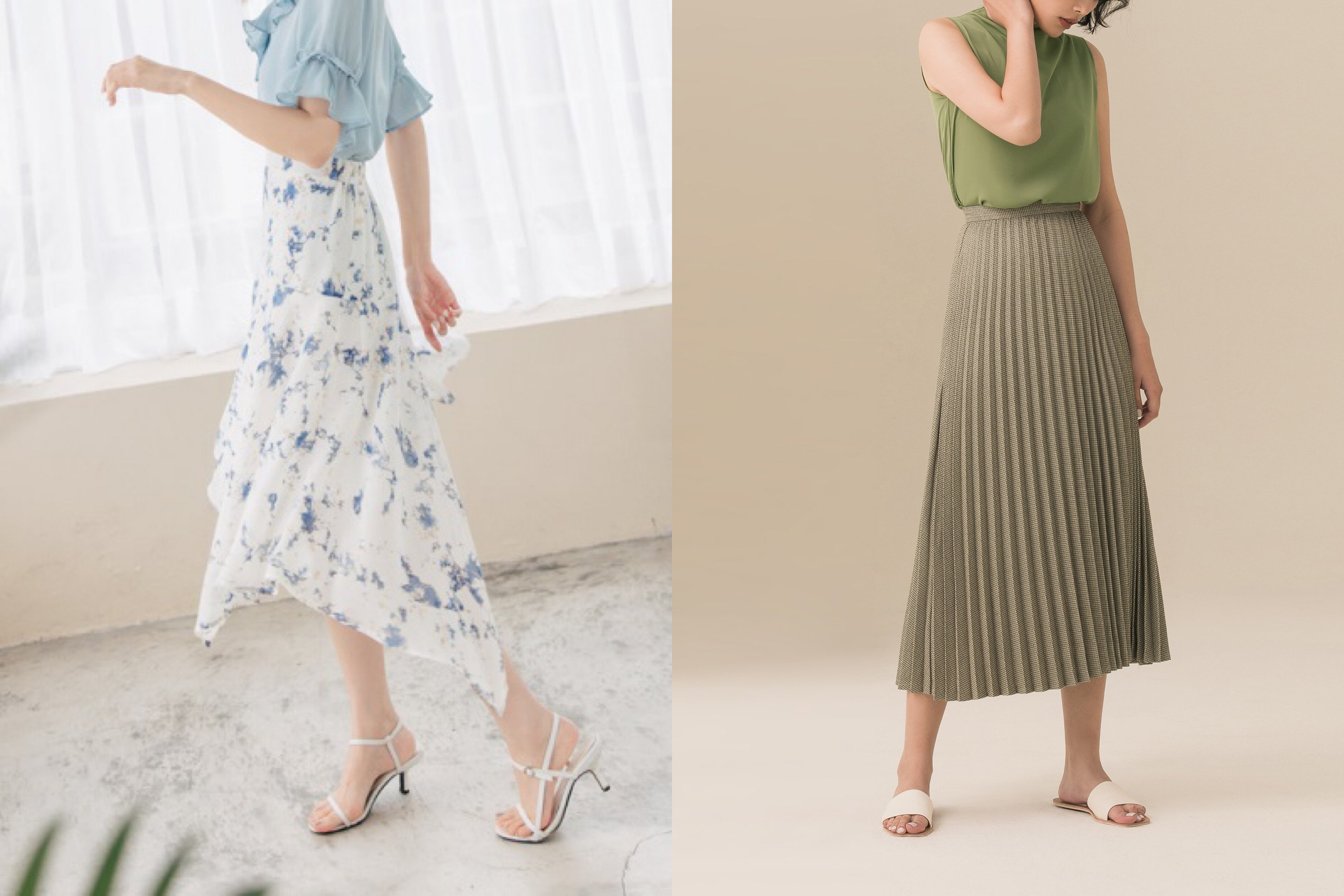 (阿茲有話說:百褶長裙要注意的是,要選擇「細摺」而非「寬摺」,因為寬摺的直線視覺沒有細摺那麼佳,因此在修飾身材比例時效果也不會太突出。)長裙推薦:A字長裙