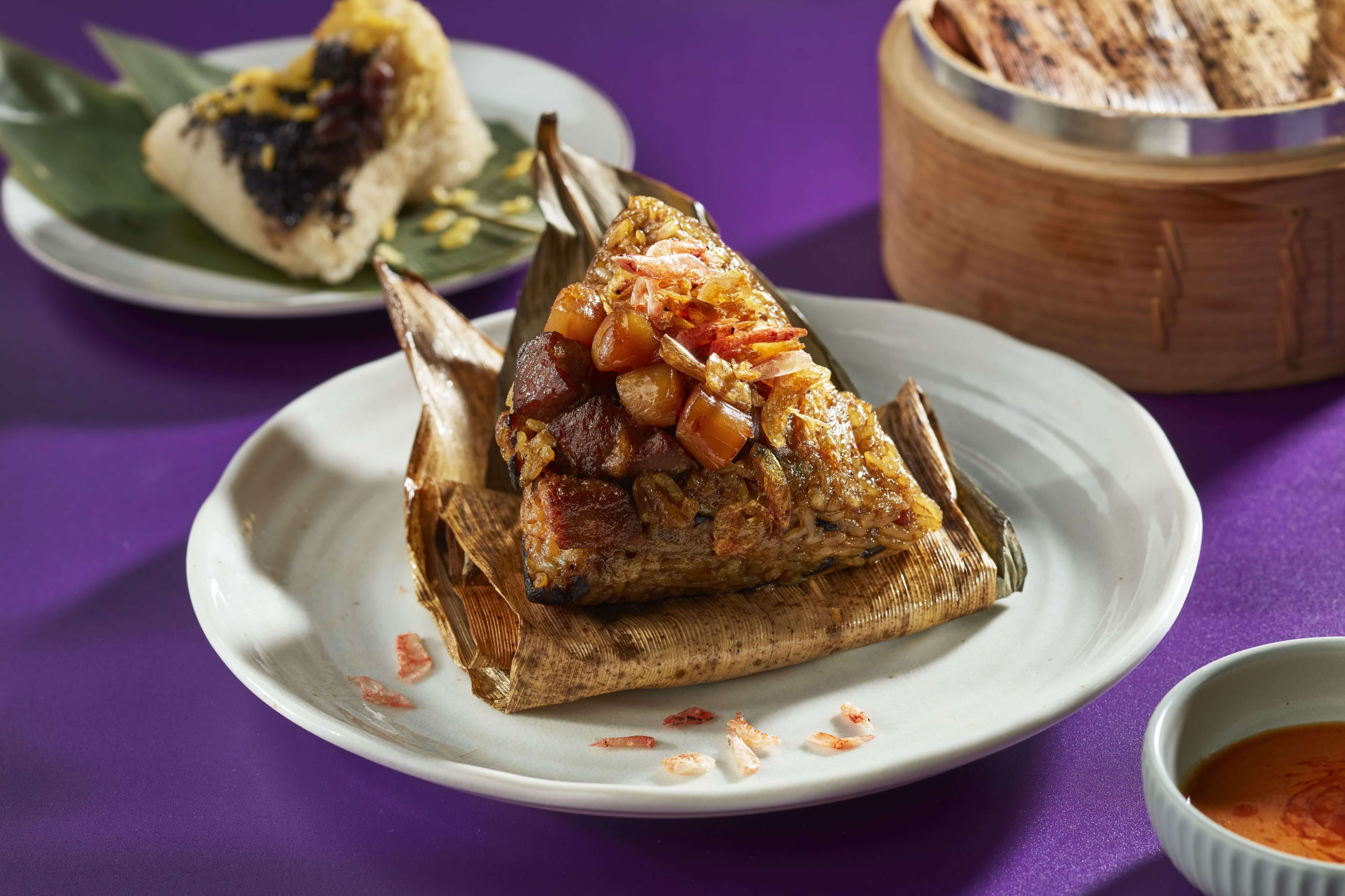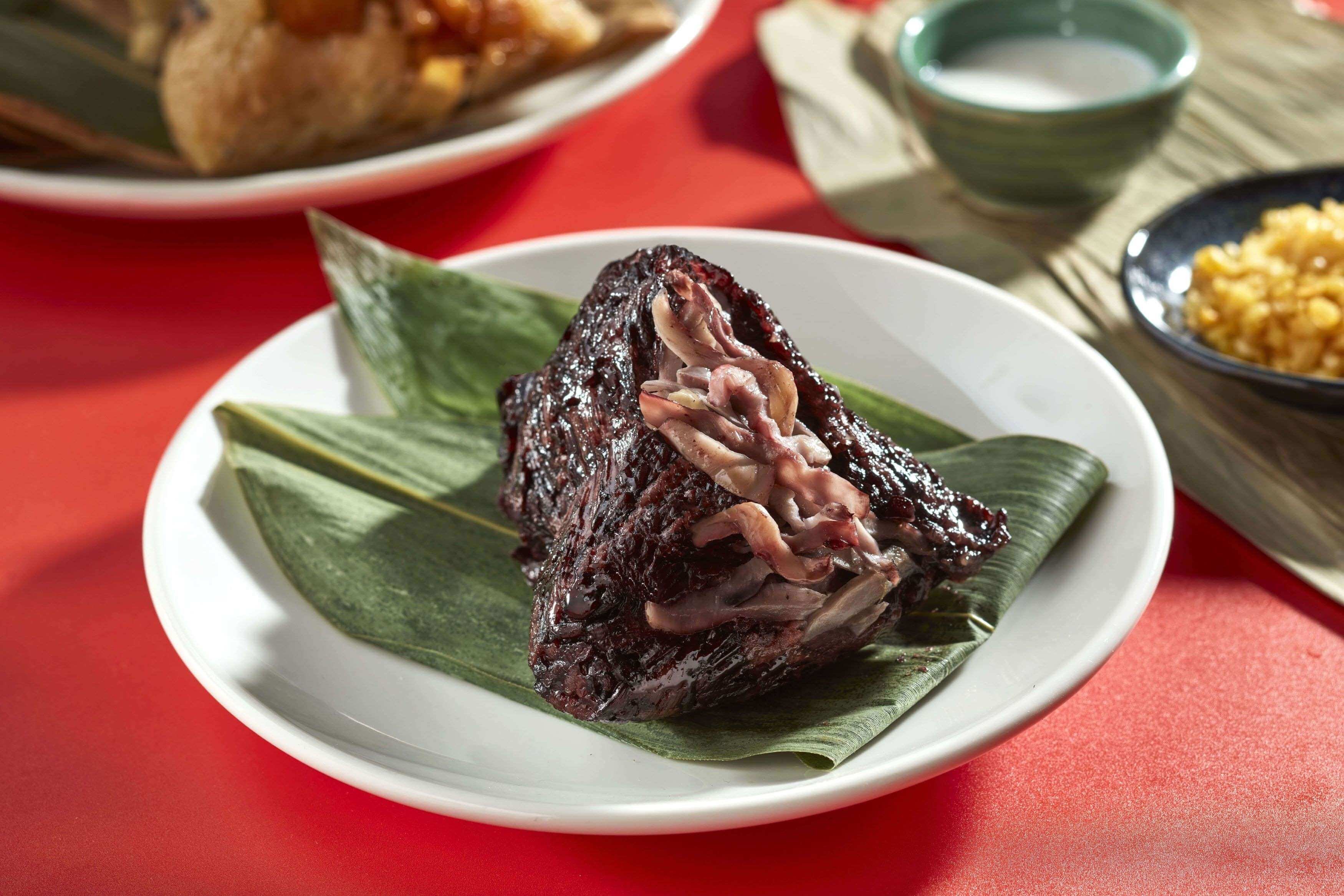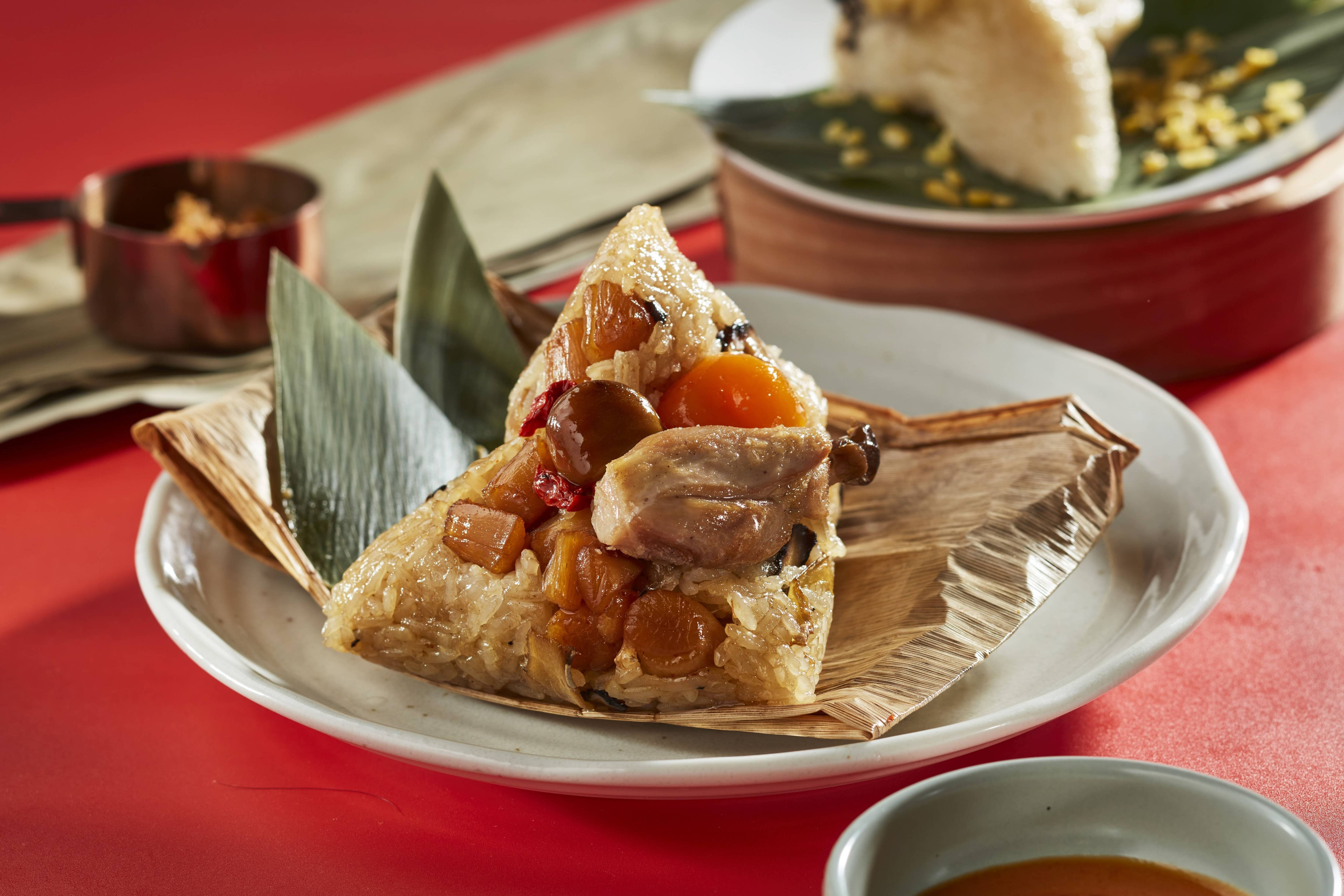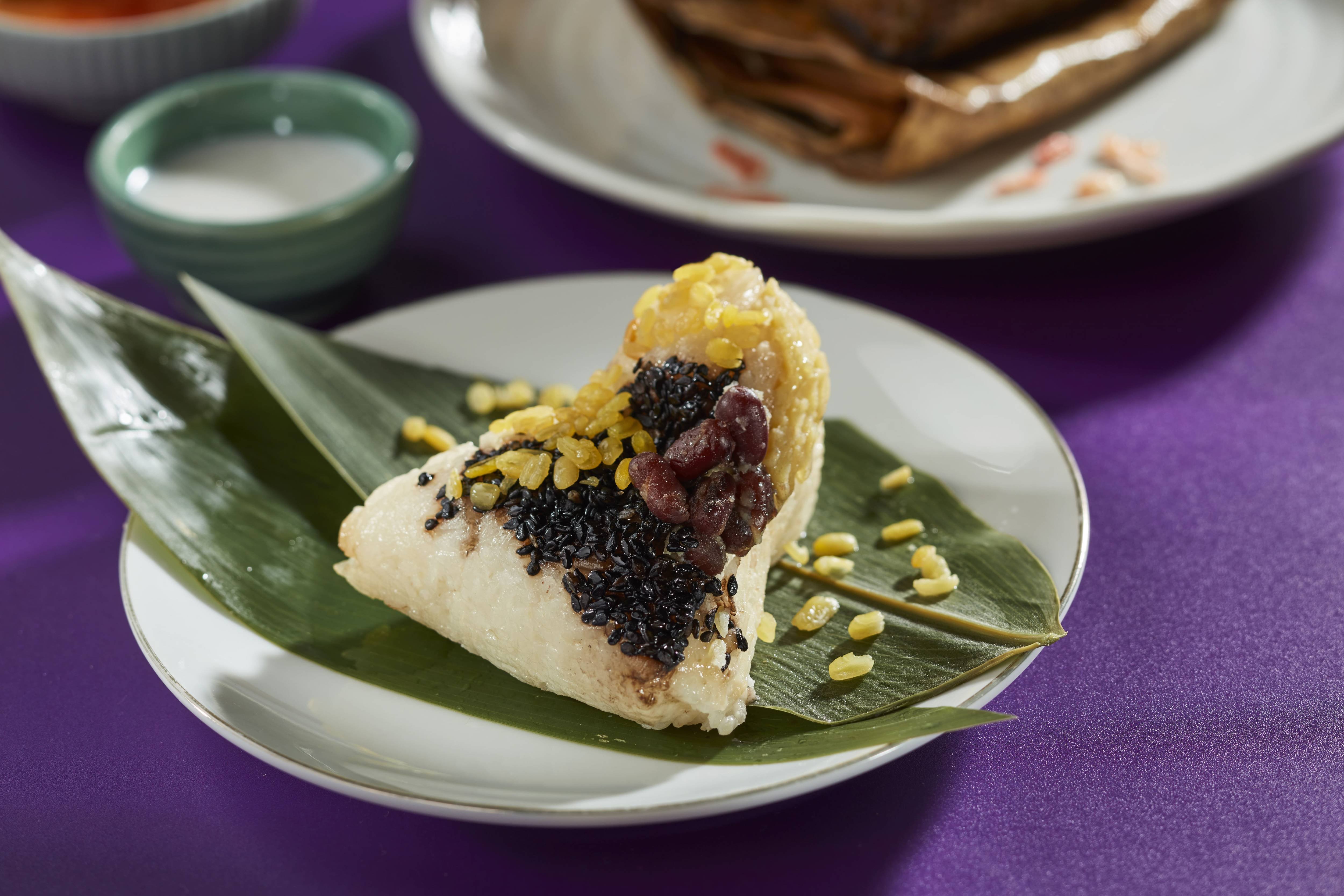 讓愛吃榴槤的人都愛不釋手的超人氣好評「椰香榴槤粽」!主廚將素有泰國水果之王的榴槤,與泰式經典元素椰奶及台味十足的綠豆沙揉合入粽,搭配南洋椰風淋醬與香酥綠豆仁,帶有口感卻又柔和清甜的滋味,於口中呈現絕妙平衡,是榴槤狂粉流連忘返的粽夏味蕾新體驗!(感覺喜歡的會很喜歡,討厭的會超討厭XD)
