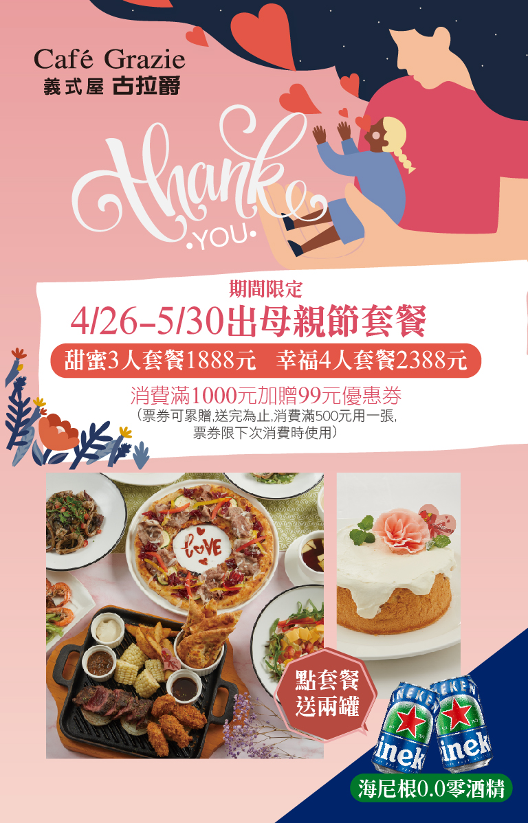 (用餐若為媽媽加碼贈百元劵乙張,限媽媽人數,來一個就送一張~)