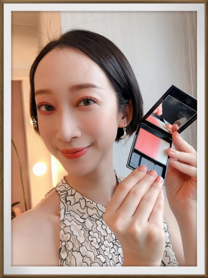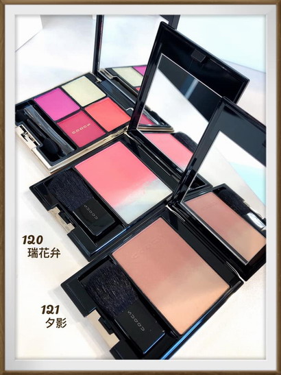 「晶采淨妍頰彩(NT2,100)」有兩個顏色,我入手的是「121夕影」,夕陽的影子,它可以修飾輪廓還有修容,是帶有紅感的棕色調,可以呈現有如陽光般健康的光澤,另外一個顏色是「120瑞花弁」,比較像是附著露珠的水嫩花瓣色,可以讓雙頰透出紅潤的血色感。