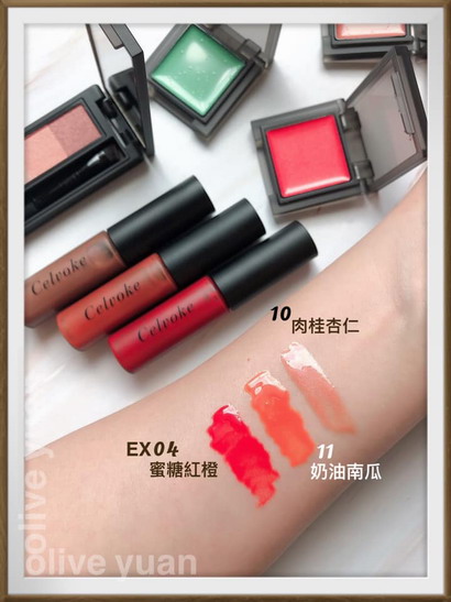 我喜歡「玩色晶漾唇蜜(NT950)」,因為它含有98%以上的天然成分配方,是可以順便保養雙唇的唇蜜,我一開始被包裝嚇到,以為裡面又是妹仔色,結果顏色非常明亮,尤其是EX04蜜糖紅橙好美喔!是我喜歡的橘紅色。