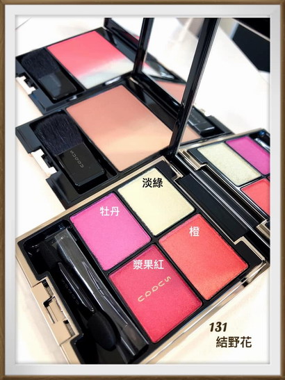 「晶采立體眼彩盤(NT2,600)」顏色真的是美呆,顯色度也很高,「131野結花」有淡綠色、橘色、牡丹色跟漿果紅色,而且曾亞凡老師說~只要選擇任何一個顏色來搭配淡綠色就非常足夠,因為每個顏色在暈染間就能非常有層次,甚至還會有光影變化,所以基本上這個眼彩盤可以畫出三種眼妝,而且鐵粉不需要擔心,這次就只有推出這一盤,不用選擇,不用傷荷包,只有一盤是不是很乾脆。