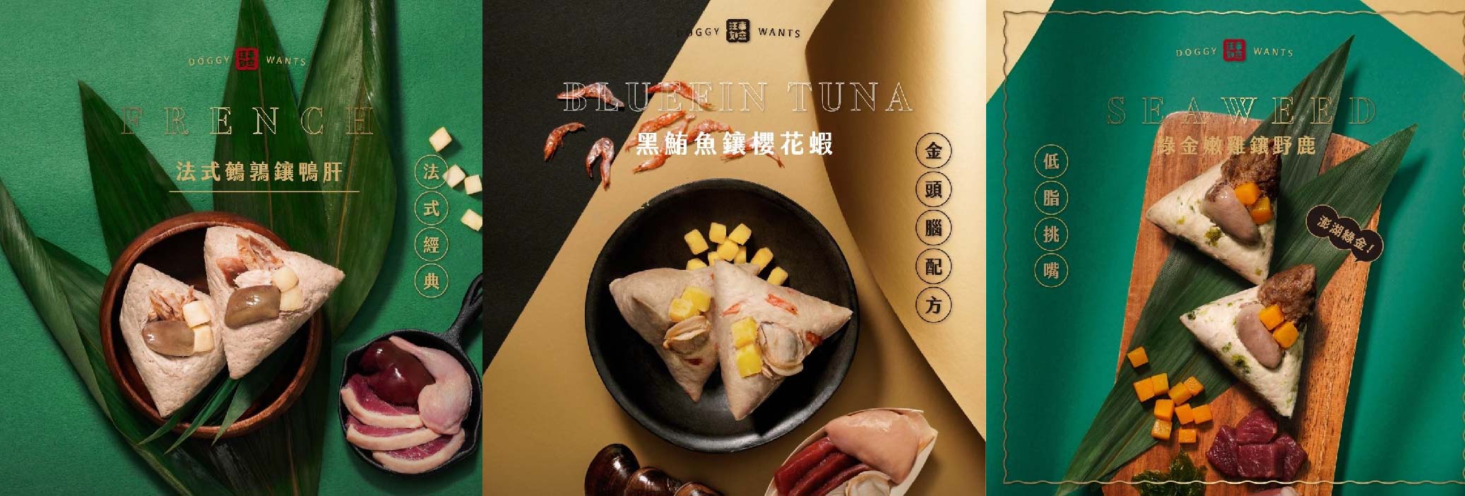 大人吃肉粽,毛小孩當然也要一起吃肉粽~汪事如意推出的「其林粽饗宴禮盒」,完全無添加糯米,並把各種豪華食材融入3個口味的粽子中,讓毛小孩吃得安心又開心~而且每顆都是單顆裝,非常貼心呢!-