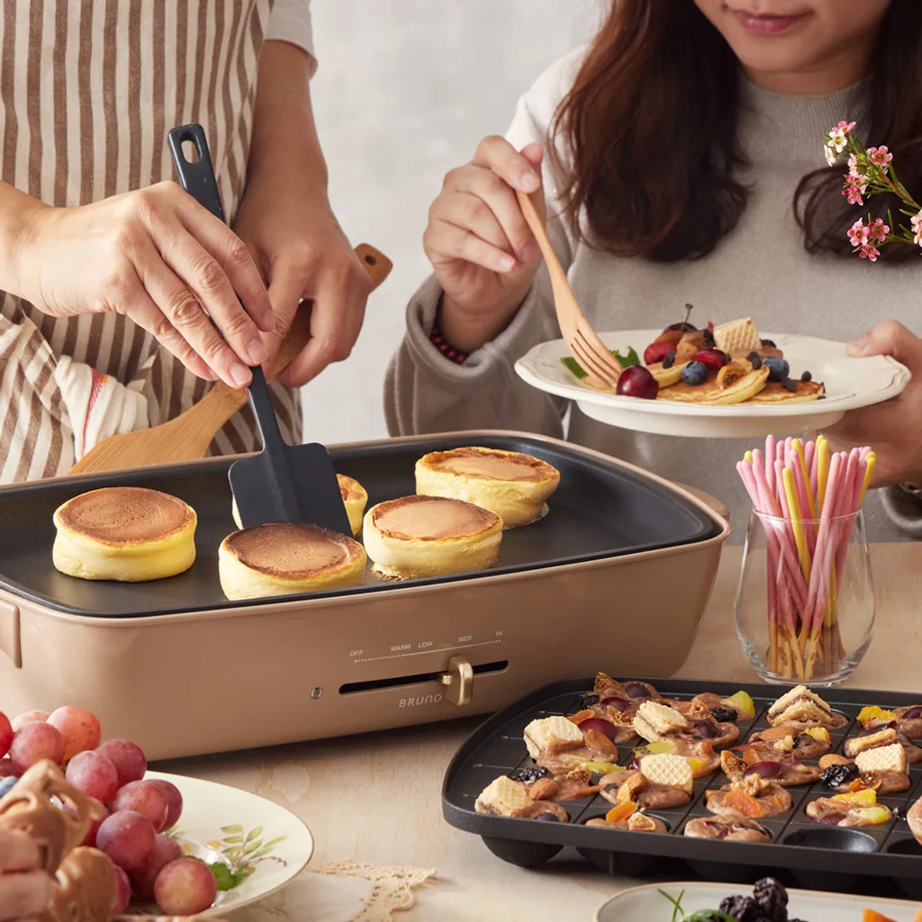 想烤出完美的麵包?那一定要入手BALMUDA的蒸氣烤麵包機!BALMUDA高質感烤麵包機是利用蒸氣技術通過完美的溫度控制重現新鮮出爐的味道,共有吐司、起司吐司、法國麵包、可頌麵包、經典五個加熱模式,在家中就能重現麵包剛出爐的外酥內軟狀態!(除了當做烤麵包機外,烤麻糬以及焗烤也是沒問題的~)奶茶色家電推薦3:BRUNO-多功能電烤盤歡聚款