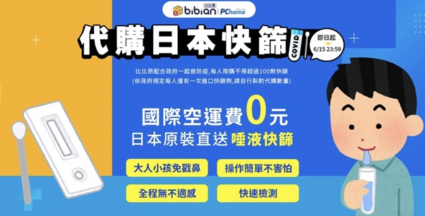 亞米好康優惠:即日起至6月15日在Bibian比比昂代購日本快篩試劑的會員,不限結帳金額,就享有國際空運費0元優惠1次(限空運訂單,且訂單中不能有其他商品)。如果使用PChome會員註冊,再送你購物金日幣300元,搭配Pi錢包信用卡結帳最高再享4%回饋。