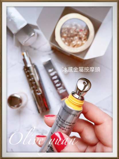 使用方法沒技巧,主要都是提拉向上,有魚尾紋的人,可以像熨斗一般繞圈圈,很舒服喔!平常工作到一半覺得雙眼皮時,也會拿來按壓冰鎮一下眼周肌膚。LA PRAIRIE萊珀妮-鑽白魚子時空聚光精露