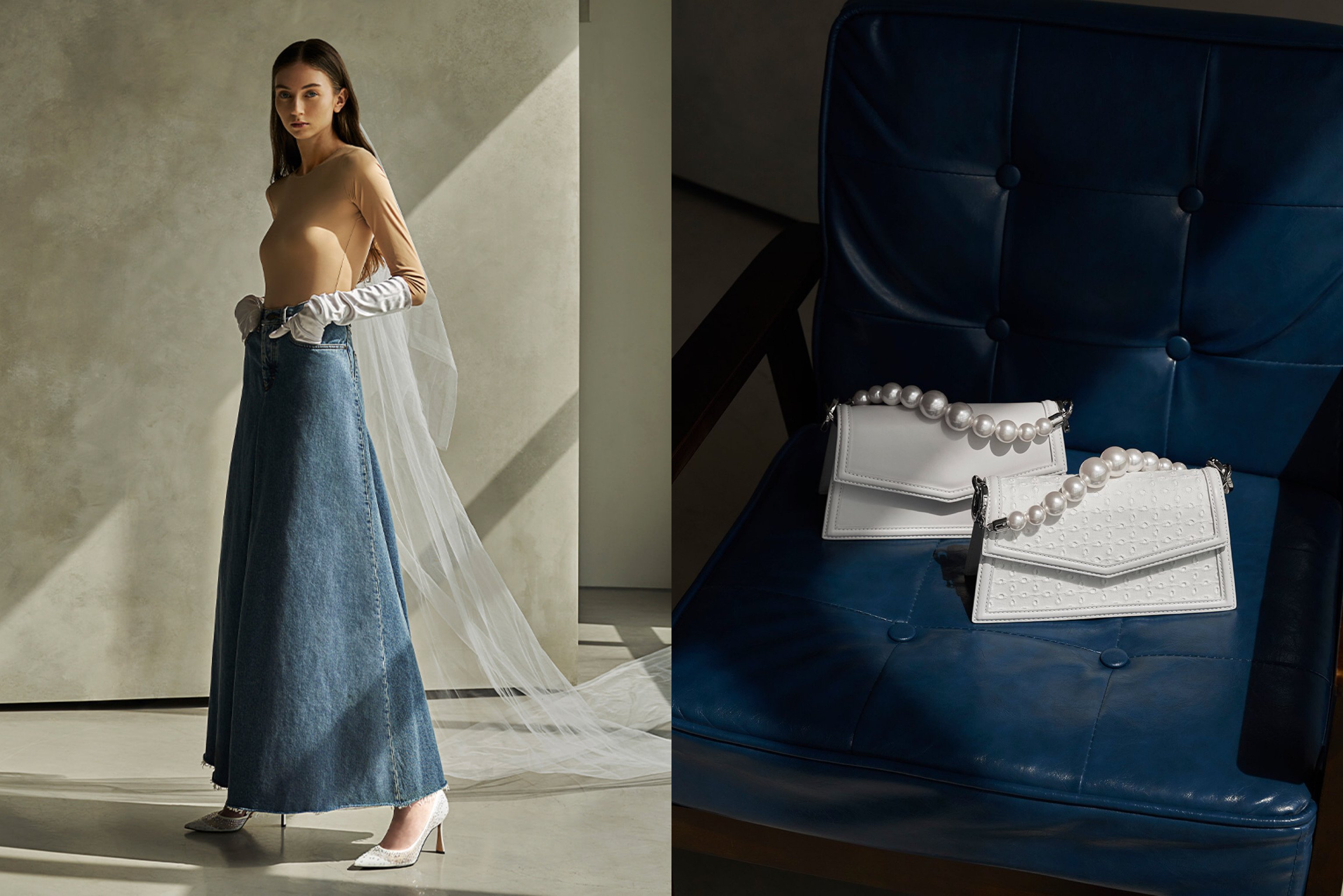 若隱若現的鞋面,顯得雙足更加仙氣唯美,清新意象中帶點曖昧氛圍,正如新婚時悸動不已的心情。CHARLES & KEITH:真皮串珠手拿包