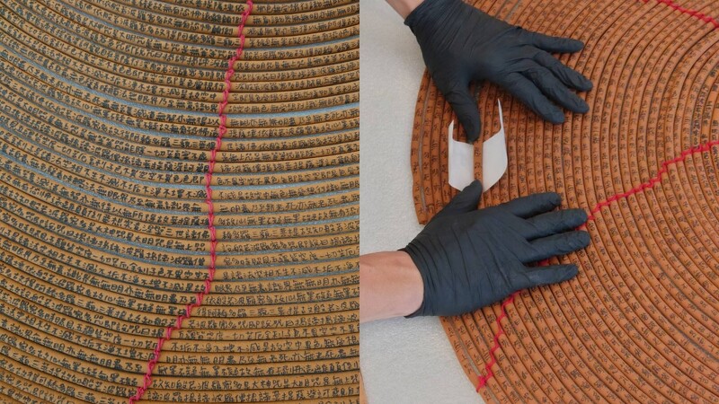才說到這裡你就瑟瑟發抖了嗎?不怕不怕!首波在網路上展出的《香環咒》是針對台灣所設計的藝術品,是由手寫於香環上各150公分的心經,替台灣的大家先壓壓驚!