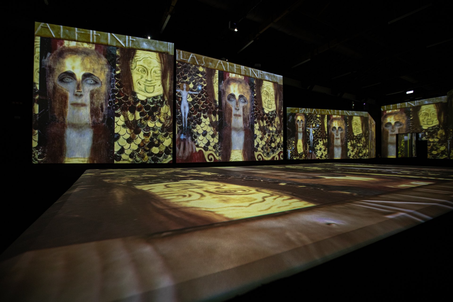 從展區牆面延續到地面,精選140幅以上克林姆的作品拆解及重組,無疑是超震撼的感官體驗。